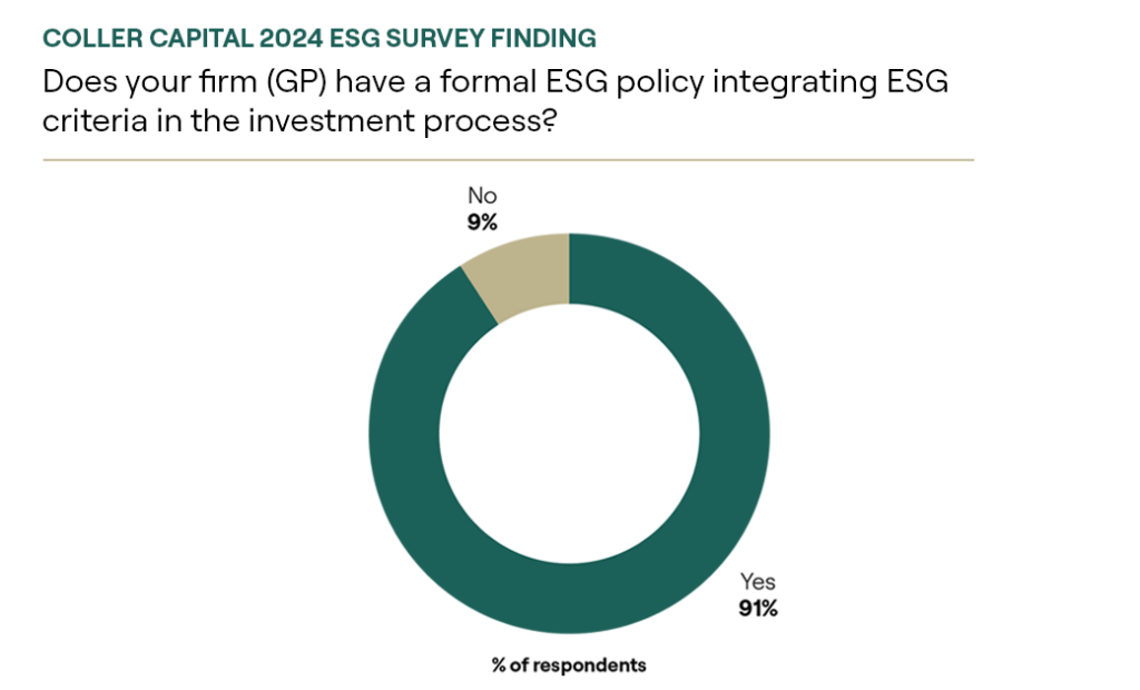 Note: Coller Capital’s 2024 ESG survey collected the responses from 66 General Partners in the CIP VI, CIP VII, CIP VIII and CCO I portfolios, in the period between February to April 2024.