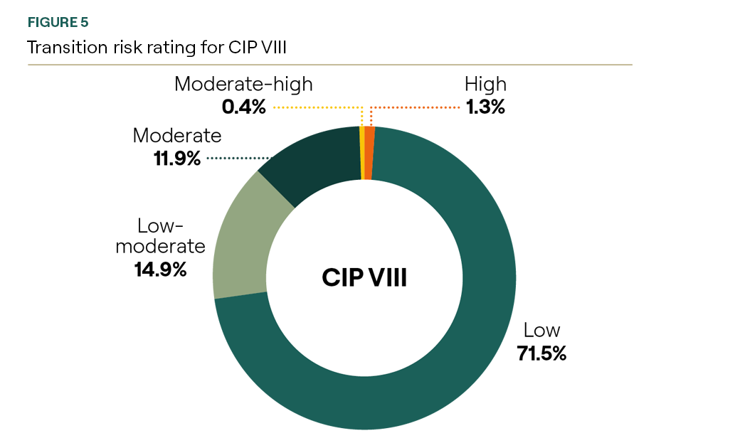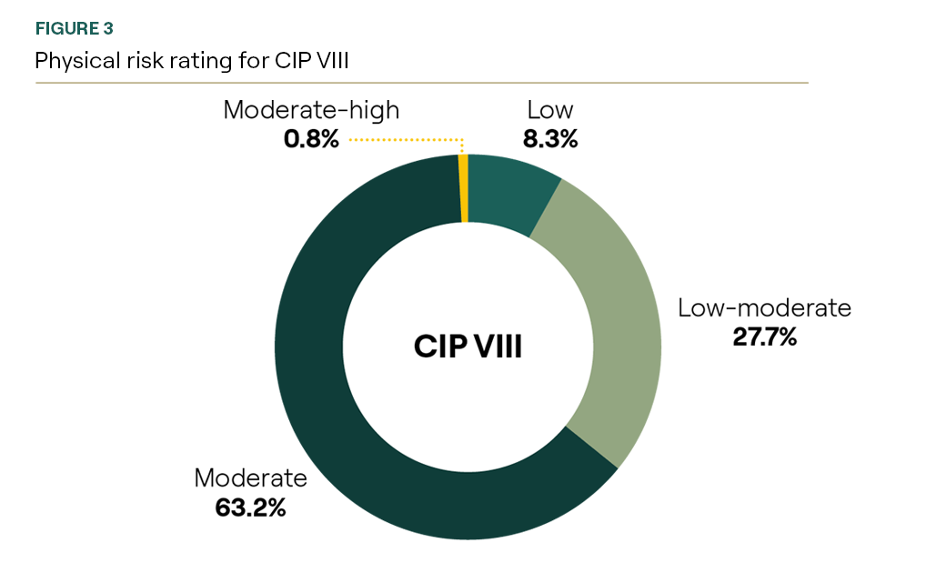 We issued our first climate-related risk note to GPs in 2017, which was developed using TCFD as a framework. We undertook climate risk analysis on CIP VIII and CCO I which can also be seen on figures 3-6.