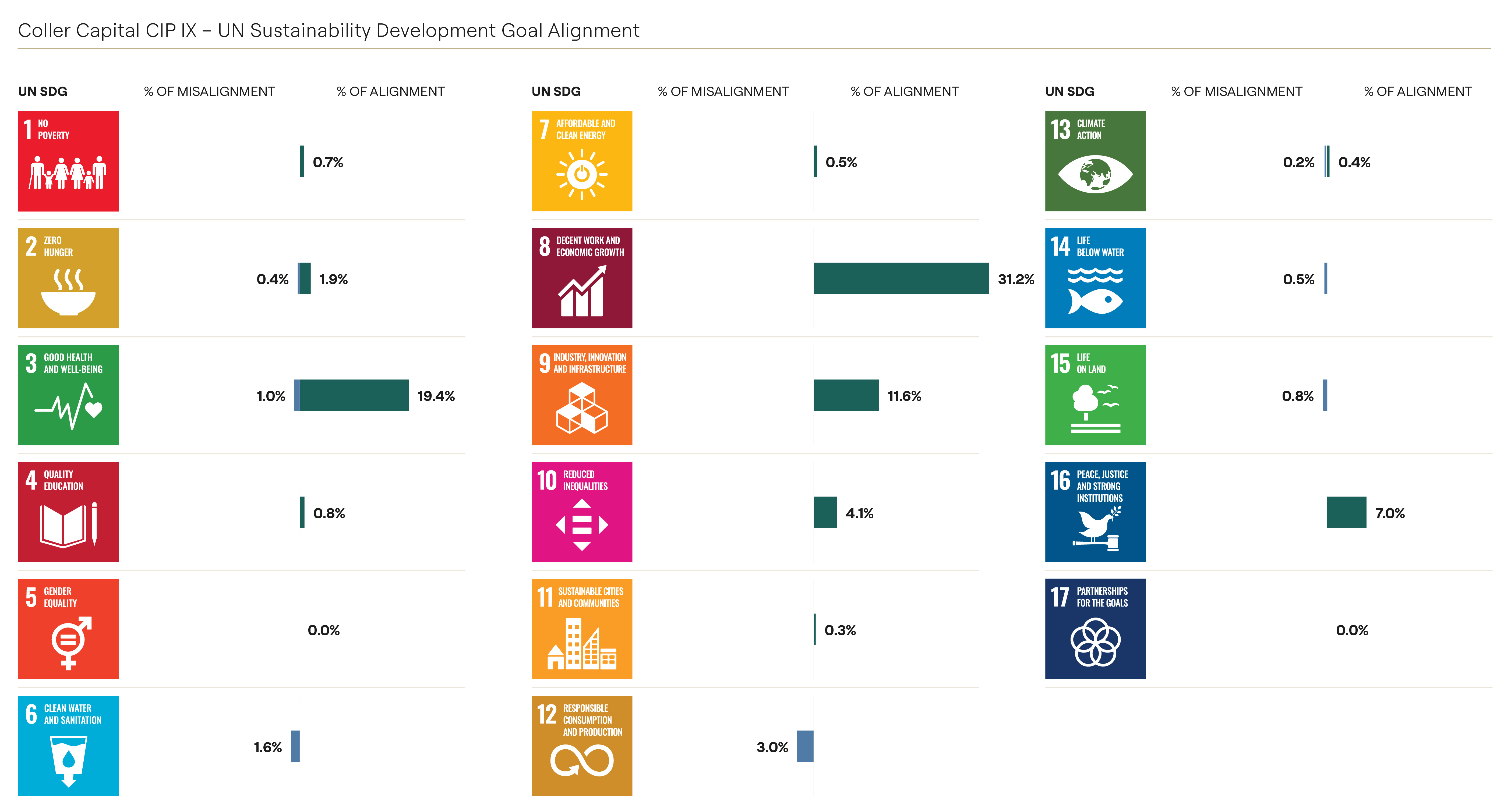 For CIP IX, we undertook a high‑level SDG mapping to indicate where portfolio exposures are more likely to contribute positively to, or detract from, specific UN goals.