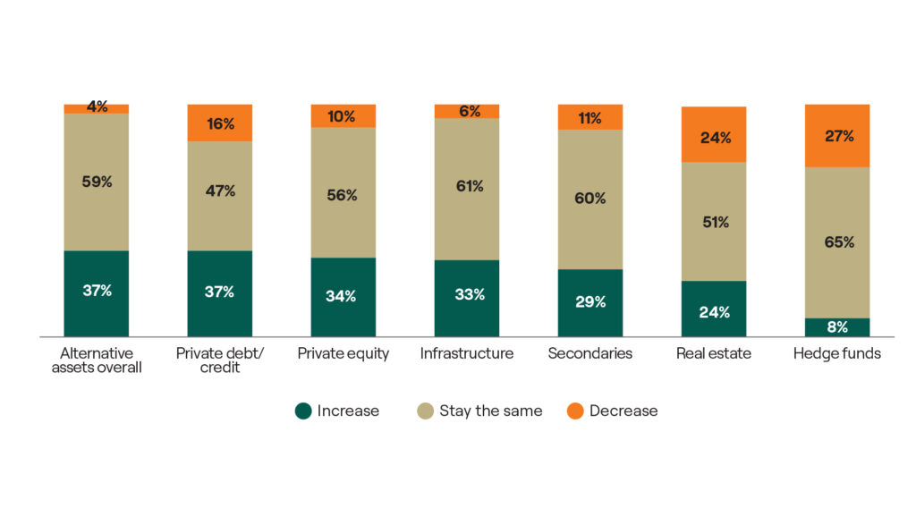 Alternatives continue to be very important to LPs, with 37% of those surveyed highlighting an intention to increase their allocation to alternatives over the next 12 months.