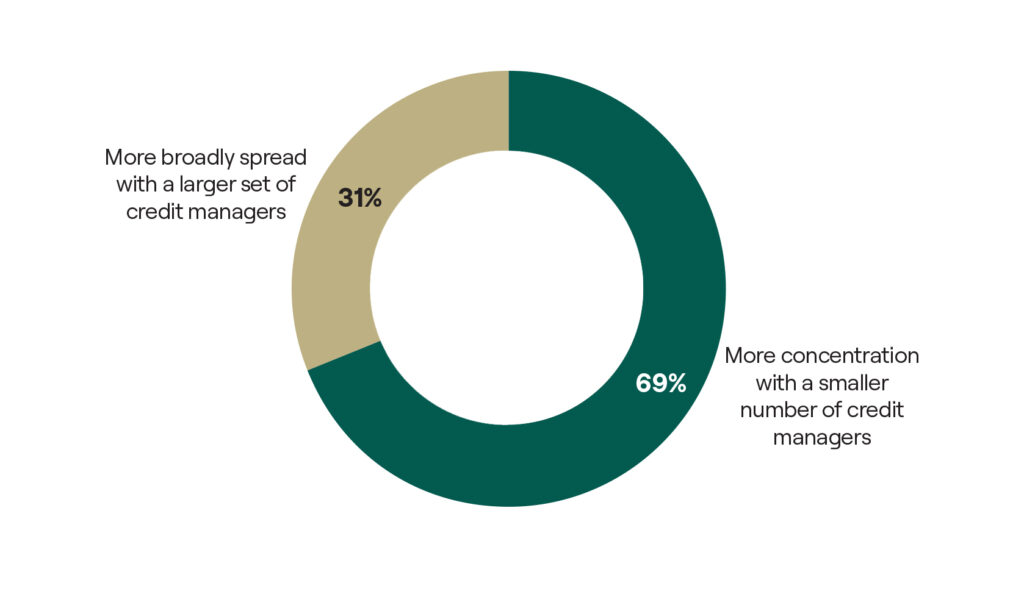 Against this backdrop, around two-thirds of investors are expecting to focus their credit programmes and concentrate on a smaller number of credit managers in the next two to three years. At the same time, a similar proportion of respondents are also likely to back a more limited number of credit strategies.
