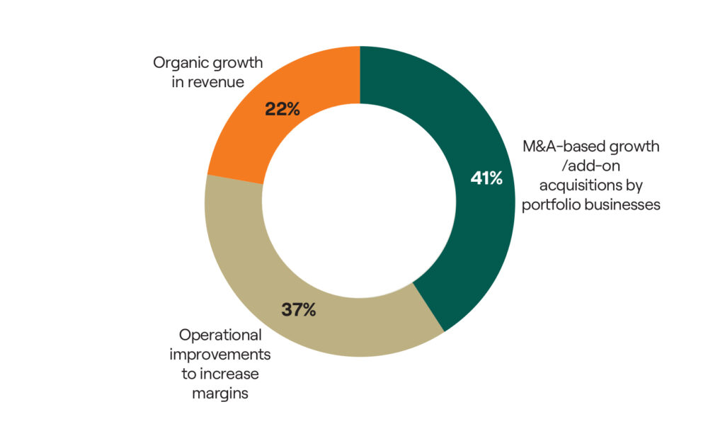 Among respondents, 41% of LPs surveyed expected M&A-based growth and add-on acquisitions to be the leading driver of value within their GPs’ portfolio companies in the next two to three years.