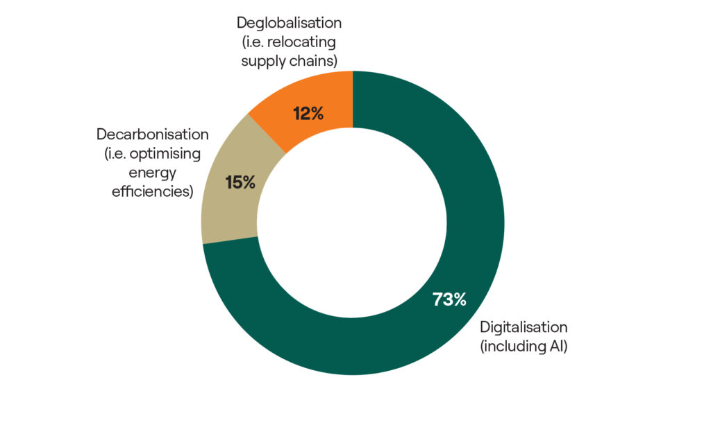 Digitalisation emerged as the top pick of areas offering the greatest potential for PE firms to bolster their portfolio companies’ performance over the next five years. 73% of LPs believe that technology, along with AI developments, presents the most promising opportunities for driving value creation out of the three options.
