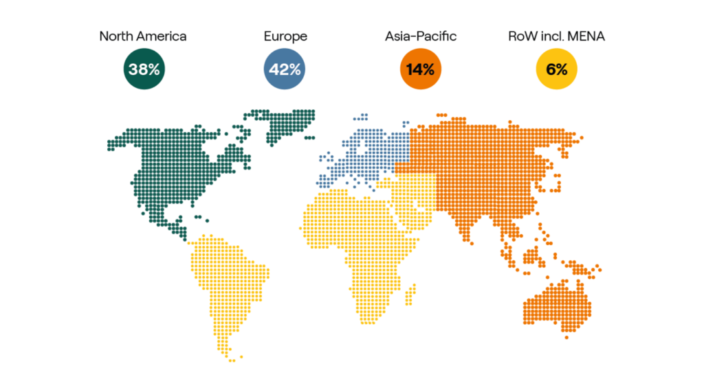 The Barometer researched the plans and opinions of 108 investors in private capital funds. These investors, based in North America, Europe, Asia Pacific and RoW including MENA, comprise a representative sample of the LP population worldwide. In total, the investors surveyed oversee an aggregate minimum of $1.97 trillion in assets under management.