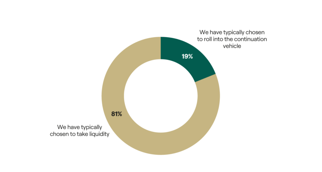 In our survey, almost one in five LPs say they typically roll their investment when presented with a CV. This suggests that, while CVs are providing an exit path and liquidity to the large majority (81%) of LPs, a reasonable minority see these transactions as offering the potential for further attractive risk‑adjusted returns.